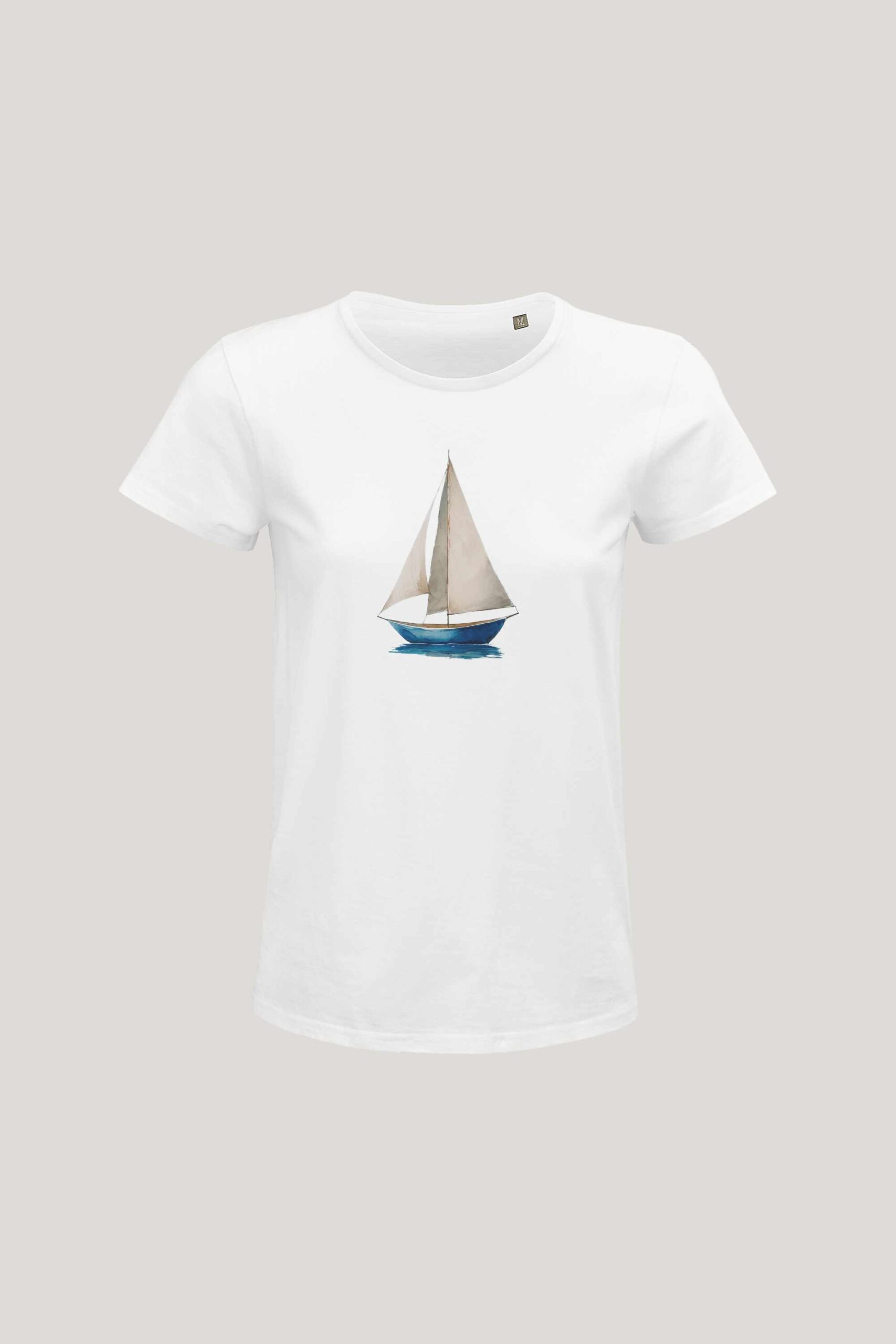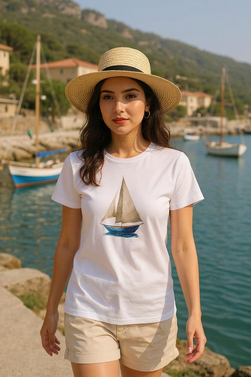 Navega hacia días tranquilos con esta camiseta de acuarela inspirada en el Mediterráneo. El delicado diseño de un velero sobre aguas serenas invita a perderse en la brisa marina y dejarse llevar por el ritmo pausado del verano.